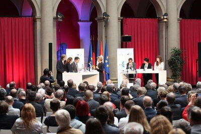 Die Rektorinnen und Präsidenten verabschieden in der Eucor-Versammlung die Eucor Strategie 2024-2030. Mit der neuen Strategie bestätigen die Mitgliedsuniversitäten ihre Vision eines klar profilierten Wissenschaftsraumes ohne Mauern und Grenzen mit internationaler Ausstrahlung. Im neuen Strategiezeitraum sollen weitere grenzüberschreitende Professuren geschaffen, ein Biocampus - ein Hub für Life Sciences and Personalised Health - eingerichtet und ein studentisches Leben mit grenzüberschreitender Dimension ermöglicht werden.