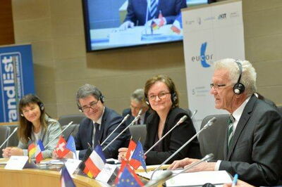 Das Präsidium von Eucor unterzeichnet die Gründungsdokumente für den Europäischen Verbund für territoriale Zusammenarbeit (EVTZ) „Eucor – The European Campus“ und gibt sich somit die Möglichkeit, gemeinsam durch eine dedizierte Rechtspersönlichkeit zu agieren. Es handelt sich um den ersten allein von Universitäten getragenen EVTZ.