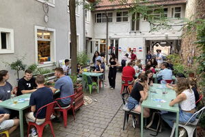 Les étudiant.e.s et le personnel des universités Eucor peuvent faire connaissance et échanger lors d'un atelier interculturel à l'occasion du dîner Eucor à Karlsruhe, avant de partager un délicieux repas.