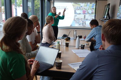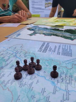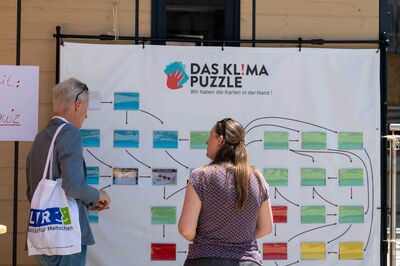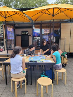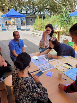Du 20 au 21 septembre, le laboratoire participatif mobile a stationné sur la place du marché de Kehl. Des scientifiques du KIT, le service de l’environnement de la ville de Kehl et l’agence de l’énergie de l’Ortenau ont expliqué comment la transition énergétique peut fonctionner dans la pratique. Les passantes et passants intéressés ont pu bénéficier gratuitement de conseils en matière d’énergie, ont appris comment transformer leur propre balcon en centrale solaire ou comment fonctionne une planification thermique durable. Dans le jeu d’atterrissage (Landing Game) « Where to land in times of climate crises? », développé dans le cadre du projet Clim’Ability, les joueuses et joueurs ont simulé comment les institutions et les entreprises pourraient s’adapter aux conditions climatiques changeantes dans la région du Rhin supérieur en 2027. Les participants se sont immergés dans un scénario possible et ont développé des stratégies collectives. « Aujourd’hui, c’était la meilleure session de jeu que j’ai eu l’occasion d’animer. Celle-ci était vraiment très réussie parce que, déjà, on était nombreux et on a eu affaire à des gens qui se sont vraiment impliqués dans le jeu et tout le monde a apporté sa pierre. Lorsqu’il s’agit de choisir des cartes de priorités, les participants se sont rapidement mis d’accord et il y avait de vrais débats », raconte Murielle Ory, sociologue à l’INSA Strasbourg et collaboratrice du projet Clim’Ability.